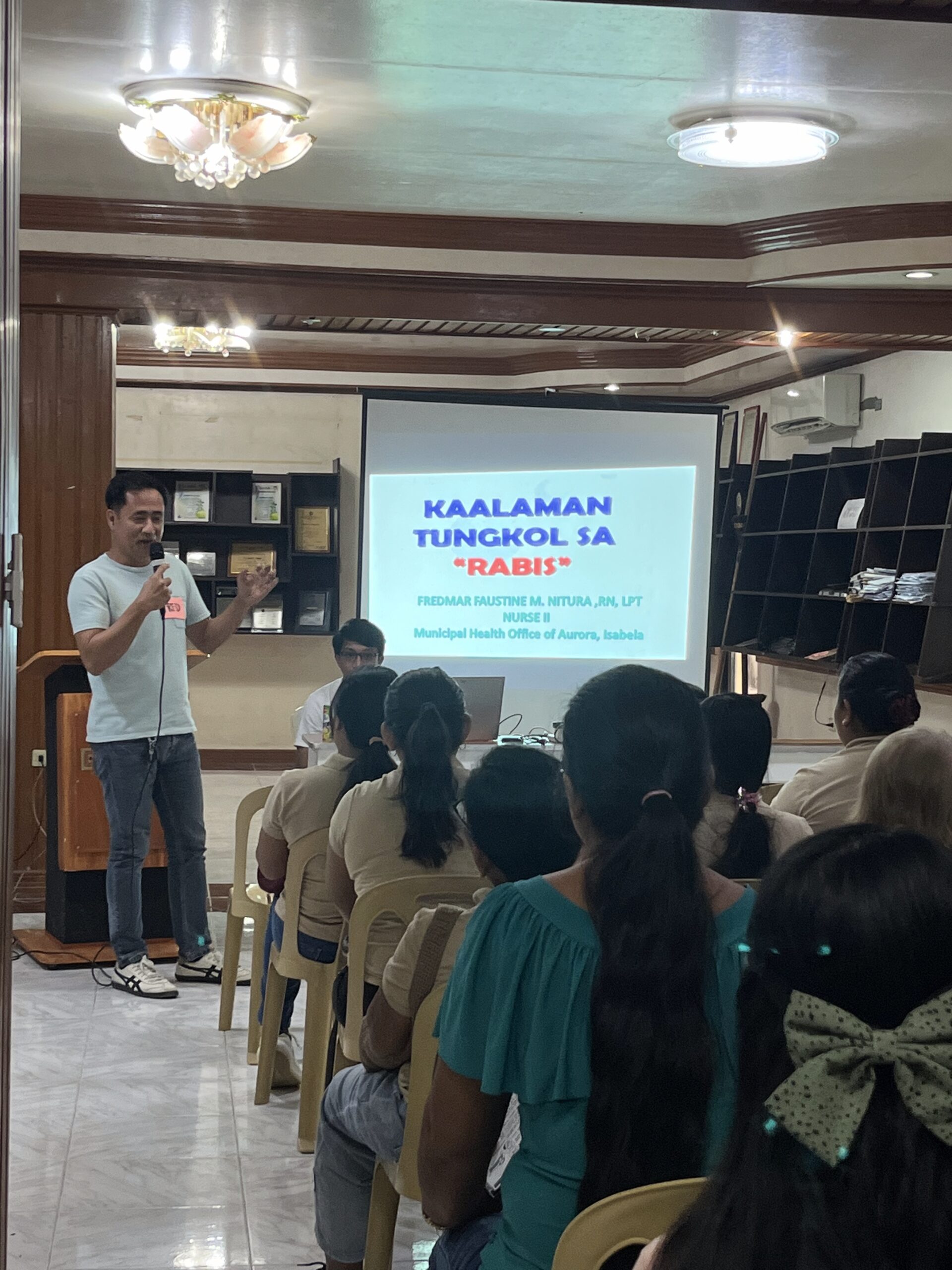 - Health Promotion and Education focusing on Dengue, Leptospirosis, and Rabies, delivered by Master of Science in Nursing students from the Graduate School: Fredmar Faustine M. Nitura, RN, LPT; Irene G. Verdillo, RN, LPT; Ellirose B. Acio, RN; and Ethel M. Oaña, RN.
