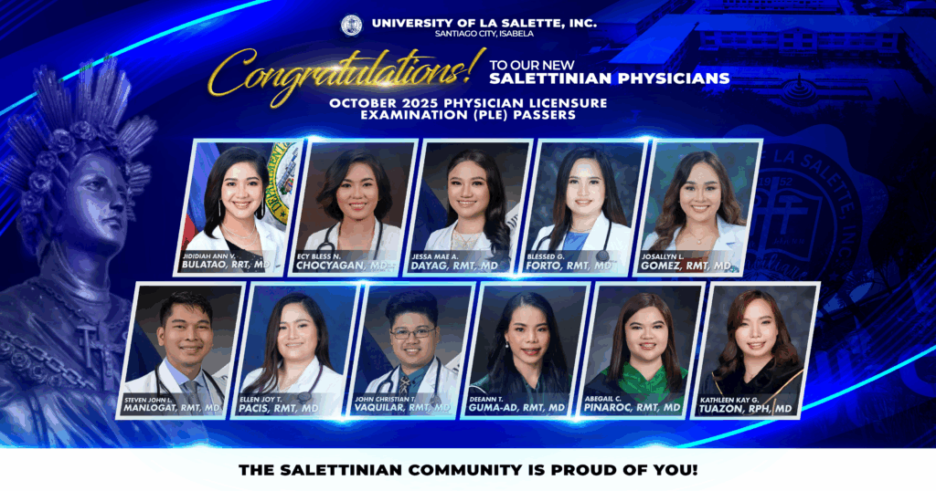 Eleven alumni of the University of La Salette, Inc. (ULS) successfully passed the October 2025 Physician Licensure Examination (PLE), as released by the Professional Regulation Commission (PRC).