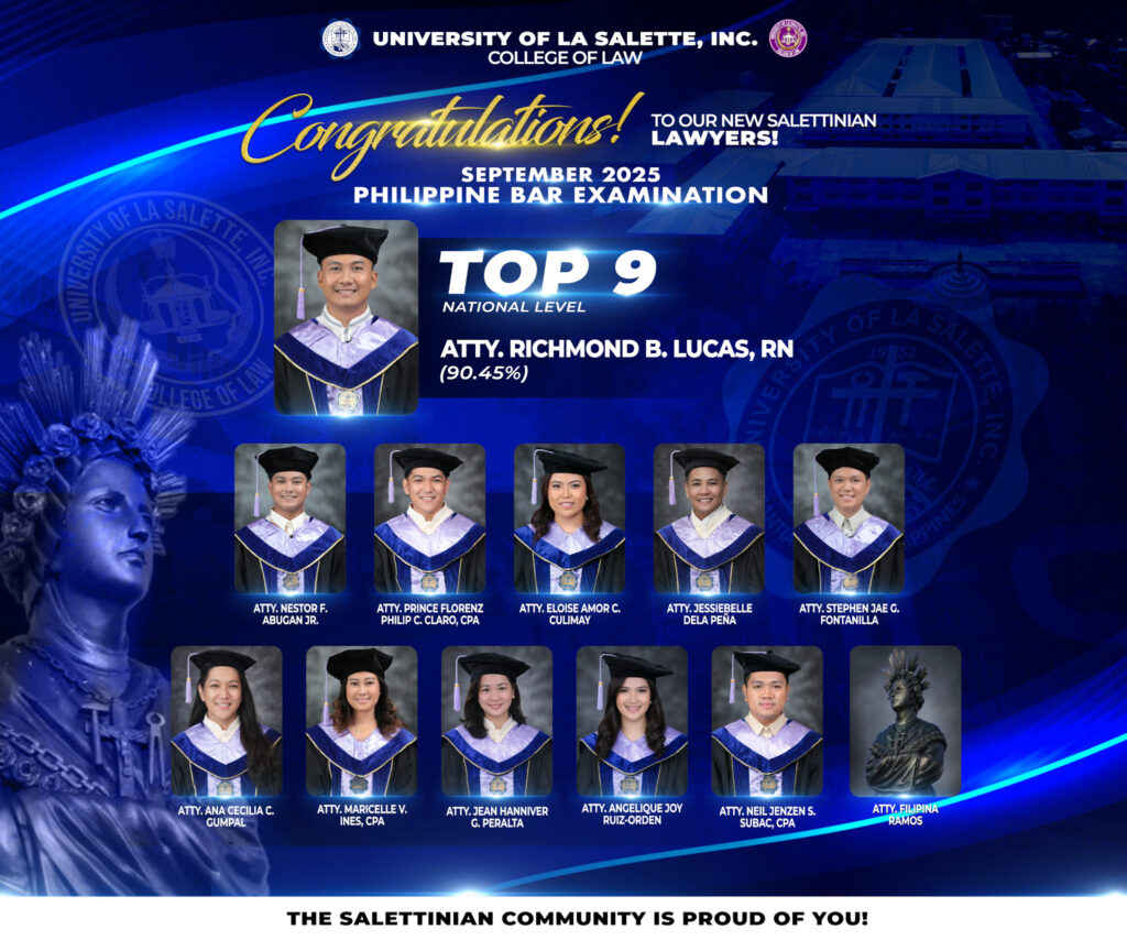 SANTIAGO CITY — Atty. Richmond Bulan Lucas, a graduate of the University of La Salette, Inc. (ULS) Law School, ranked 9th in the 2025 Bar Examinations, earning a rating of 90.45%, according to results released by the Supreme Court of the Philippines on January 7, 2026.