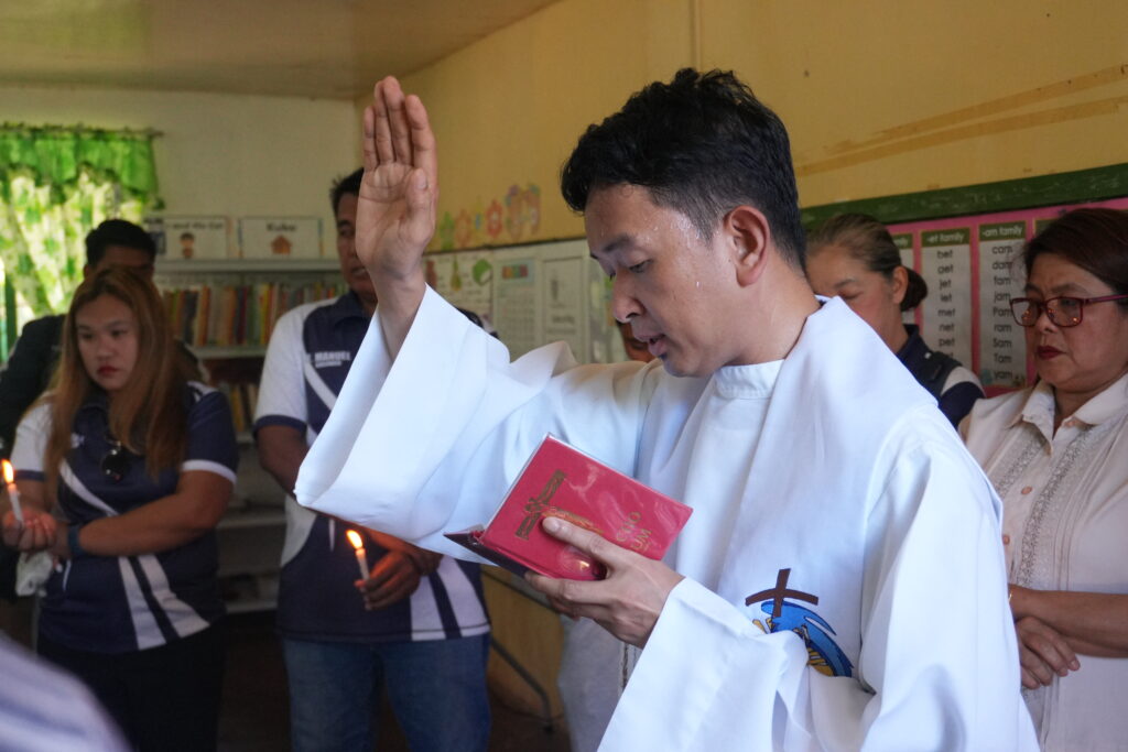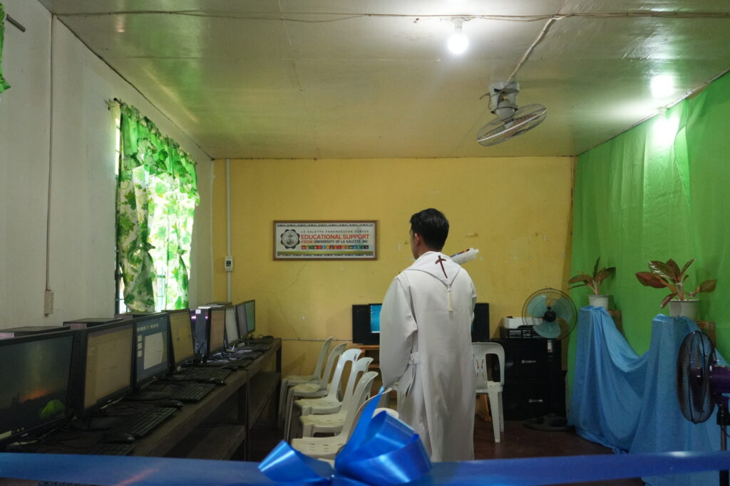 Rev. Fr. Joey P. Balunsat, MS, university chaplain, blessed the donated computers and led the ribbon‑cutting ceremony together with Dimarucut.