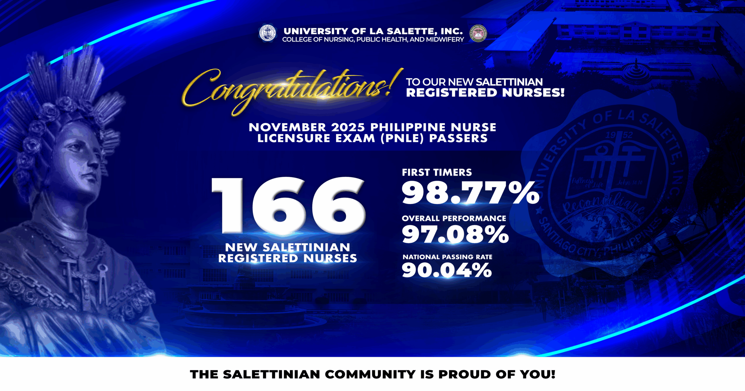 ULS Records 97.08% Overall Passing Rate in November 2025 NLE; Produces 166 New Salettinian Nurses Read More » November 27, 2025